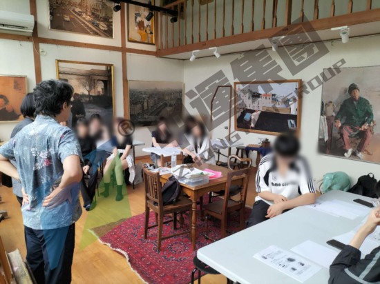 今日我司安排接待我国美术行业一行师生在日本名校多摩美术大学学习日本著名画家 多摩大学教授須田基揮先生的指点